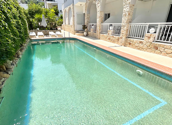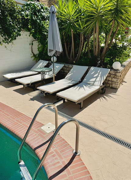 Οι επισκέπτες μας μπορούν να απολαύσουν την πισίνα και τις ξαπλώστρες
